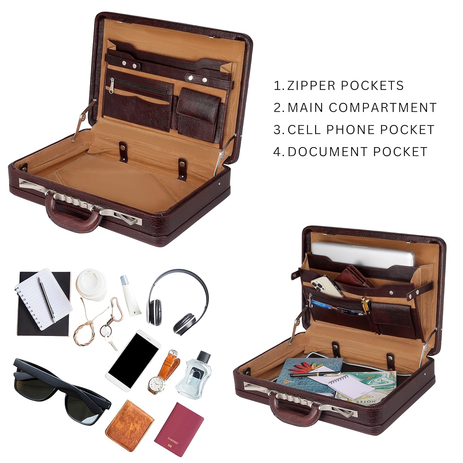 Full Garin Leather Laptop Office Briefcases Bags for Men with Italian Lock Medium Briefcase - For Men (Brown)