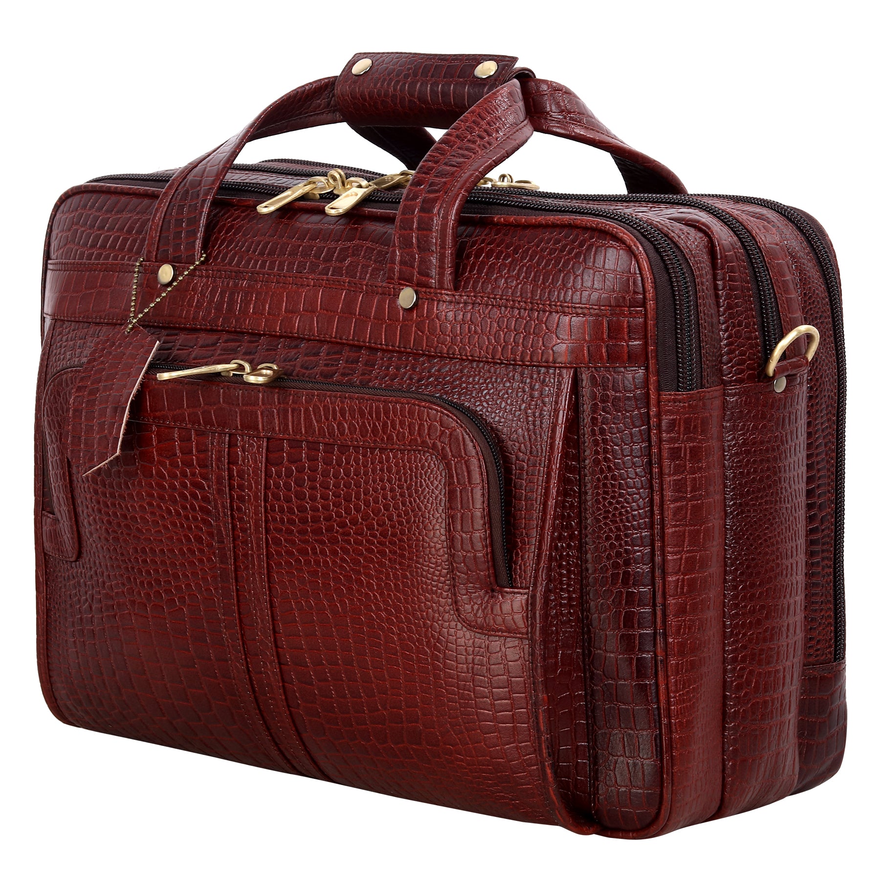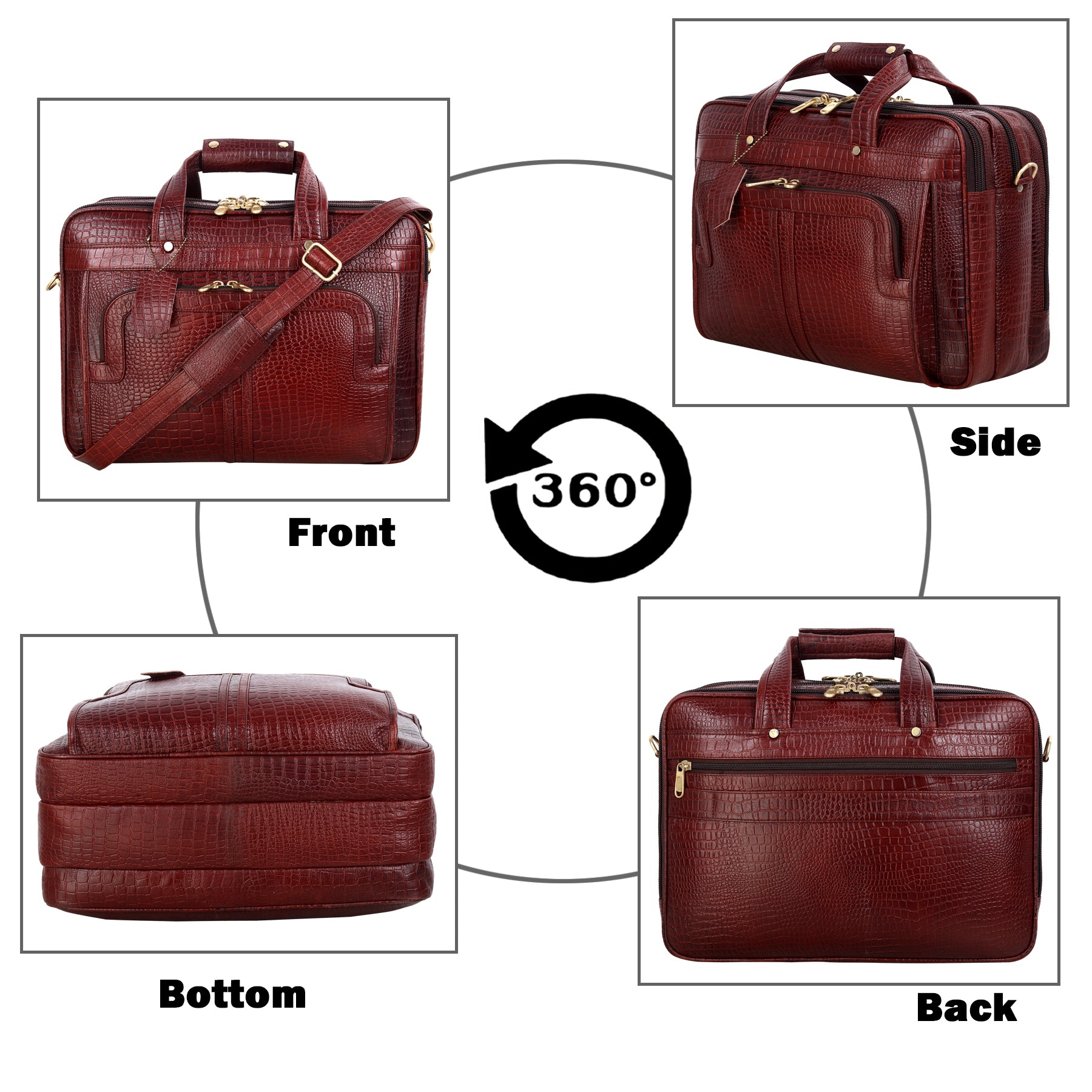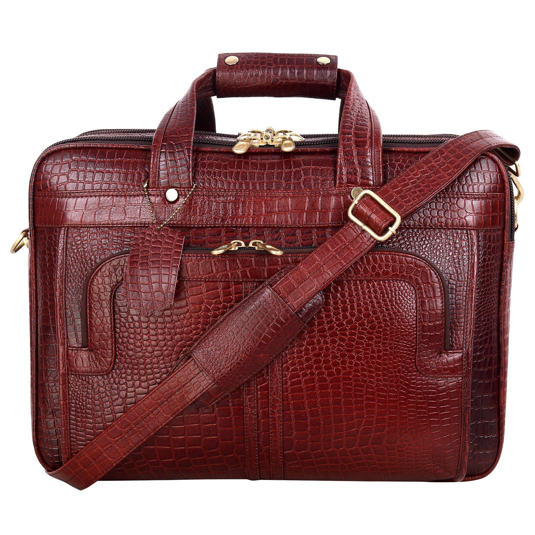 Step into timeless elegance with the Clifton Genuine Leather Laptop Bag, designed for professionals who value both style and functionality. Crafted from 100% premium leather with a rich croco-textured finish, this bag offers a perfect blend of sophistication and practicality. With 3 spacious main compartments, a padded laptop section, and multiple utility pockets, it keeps your essentials organized — from documents and gadgets to pens, cards, and mobile phones. The detachable shoulder strap and reinforced leather handles make it versatile for office, meetings, or business travel. Whether you're heading to work or an important client meeting, this laptop bag ensures you carry your world in style and confidence. Material: 100% Genuine Leather Texture: Croco-Embossed Pattern Dimensions: Height 12 inch × Length 16 inch × Depth 5 inch Compartments: 3 Main Zip Compartments 1 Front Zip Compartment 1 Back Zip Compartment 1 Inner Zip Pocket Laptop Section: Padded (fits up to 15.6-inch laptop) Utility Pockets: 2 Pen Holders, 1 Mobile Holder, 1 Card Holder Carrying Options: Adjustable Shoulder Strap + Dual Top Handles Hardware: Durable Metal Zippers and Fittings in Gold Finish Closure Type: Smooth Double Zippers Ideal For: Office, Business, Travel, Meetings,