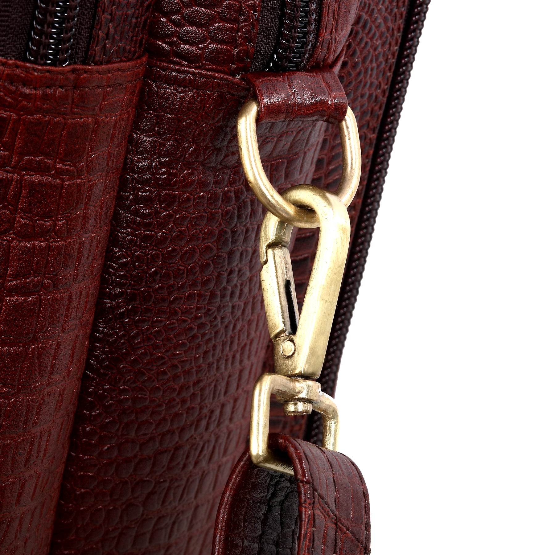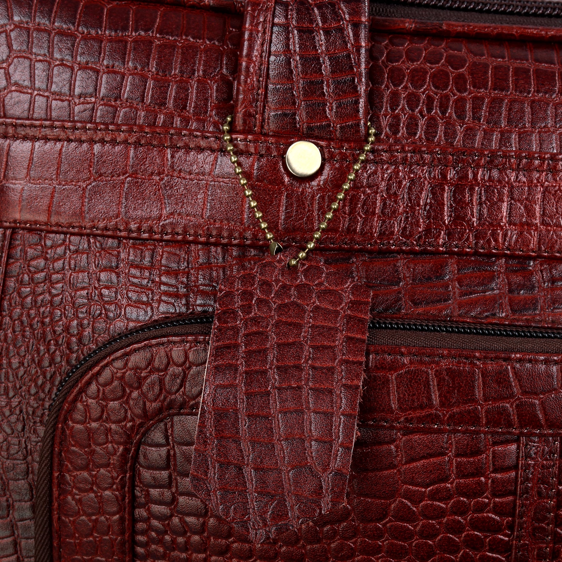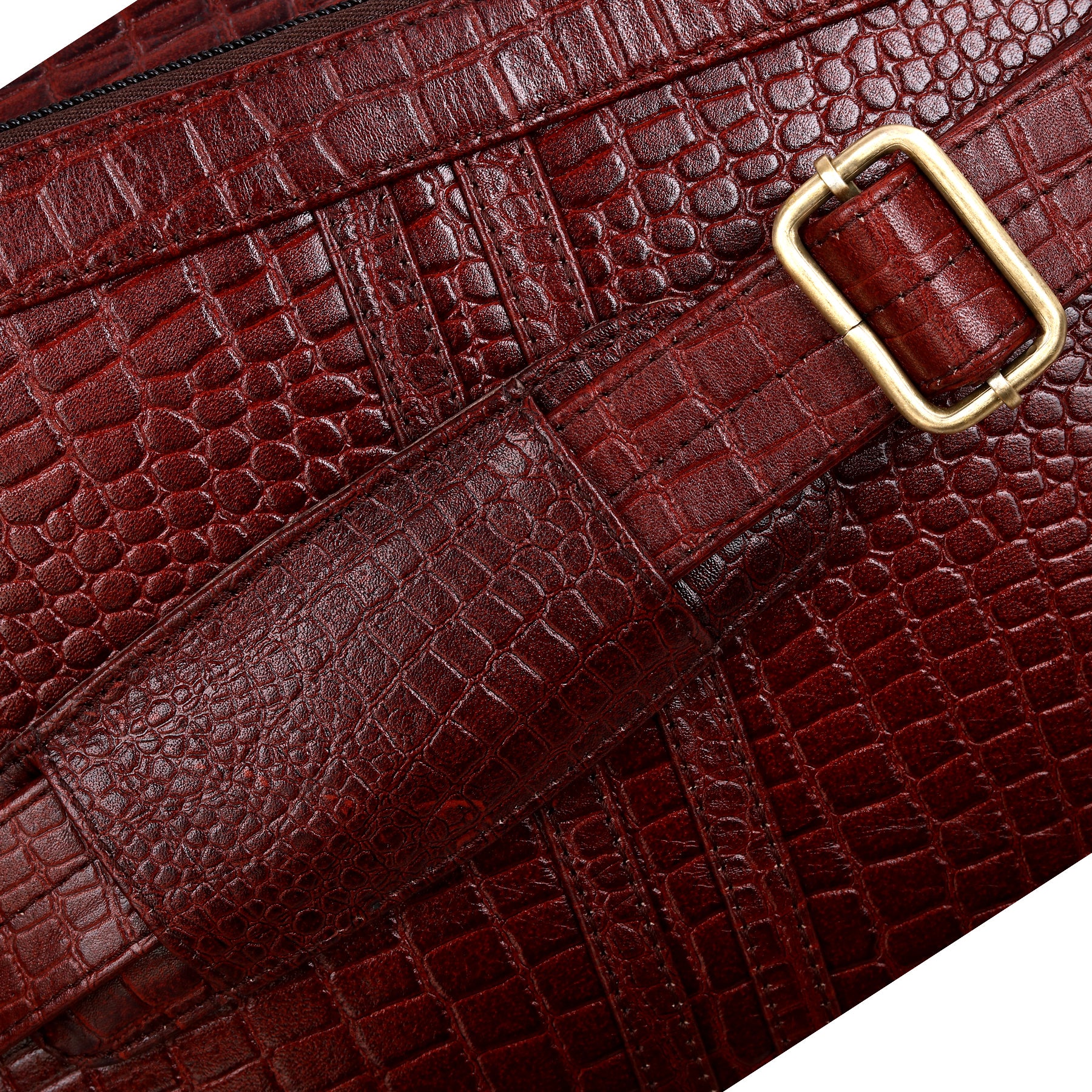 Step into timeless elegance with the Clifton Genuine Leather Laptop Bag, designed for professionals who value both style and functionality. Crafted from 100% premium leather with a rich croco-textured finish, this bag offers a perfect blend of sophistication and practicality. With 3 spacious main compartments, a padded laptop section, and multiple utility pockets, it keeps your essentials organized — from documents and gadgets to pens, cards, and mobile phones. The detachable shoulder strap and reinforced leather handles make it versatile for office, meetings, or business travel. Whether you're heading to work or an important client meeting, this laptop bag ensures you carry your world in style and confidence. Material: 100% Genuine Leather Texture: Croco-Embossed Pattern Dimensions: Height 12 inch × Length 16 inch × Depth 5 inch Compartments: 3 Main Zip Compartments 1 Front Zip Compartment 1 Back Zip Compartment 1 Inner Zip Pocket Laptop Section: Padded (fits up to 15.6-inch laptop) Utility Pockets: 2 Pen Holders, 1 Mobile Holder, 1 Card Holder Carrying Options: Adjustable Shoulder Strap + Dual Top Handles Hardware: Durable Metal Zippers and Fittings in Gold Finish Closure Type: Smooth Double Zippers Ideal For: Office, Business, Travel, Meetings,